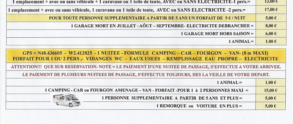 UNIQUEMENT sur RESERVATION de PÂQUES à MI –SEPTEMBRE